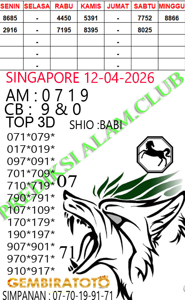 Syair Singapore Minggu 12 April 2026