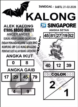 Syair Singapore Sabtu 21 Febuari 2026