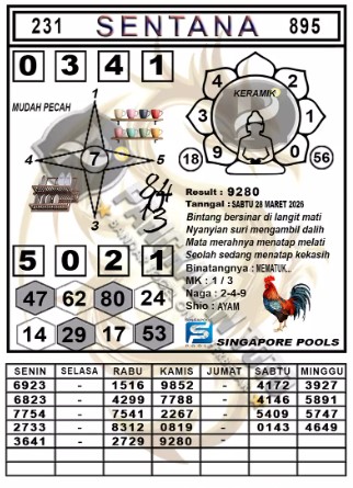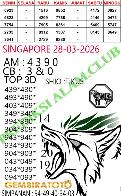 Syair Singapore Sabtu 28 Maret 2026
