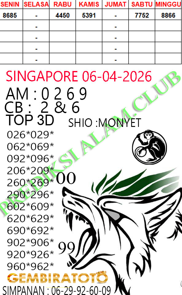 Syair Singapore Senin 06 April 2026