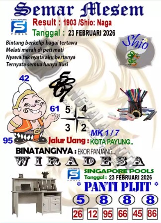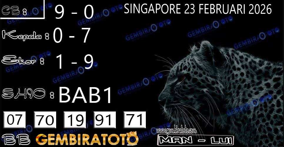 Selamat Datang di SINGAPORE Gembiratoto, disini syair paling lengkap dan juga syair yang paling cepat di naikan , dan juga ada prediksi togel yang lain untuk semua pasaran togel tiap hari nya kita upload serta ada paito warna juga, dan semua nya hanya berdasarkan prediksi serta syair tidak ada yang pasti dalam bermain togel semoga angka angka prediksi yang kita keluar kan bisa keluar untuk resultnya Syair.