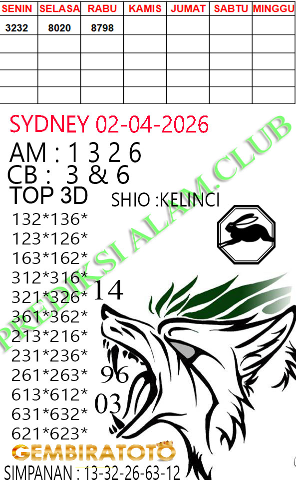 Selamat Datang di SYDNEY Gembiratoto, disini syair paling lengkap dan juga syair yang paling cepat di naikan , dan juga ada prediksi togel yang lain untuk semua pasaran togel tiap hari nya kita upload serta ada paito warna juga, dan semua nya hanya berdasarkan prediksi serta syair tidak ada yang pasti dalam bermain togel semoga angka angka prediksi yang kita keluar kan bisa keluar untuk resultnya Syair.