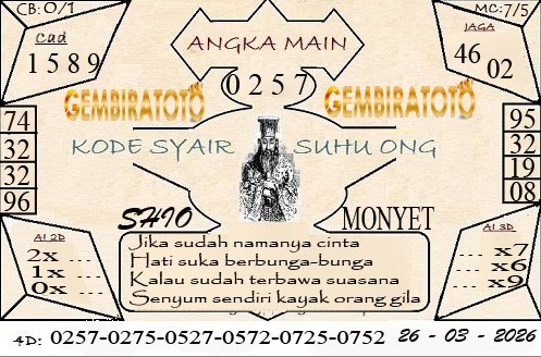 Selamat Datang di SYDNEY Gembiratoto, disini syair paling lengkap dan juga syair yang paling cepat di naikan , dan juga ada prediksi togel yang lain untuk semua pasaran togel tiap hari nya kita upload serta ada paito warna juga, dan semua nya hanya berdasarkan prediksi serta syair tidak ada yang pasti dalam bermain togel semoga angka angka prediksi yang kita keluar kan bisa keluar untuk resultnya Syair.