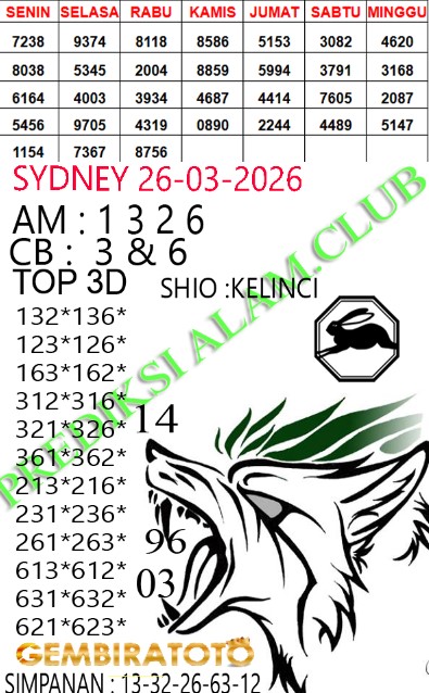 Syair Sydney Lotto Kamis 26 Maret 2026