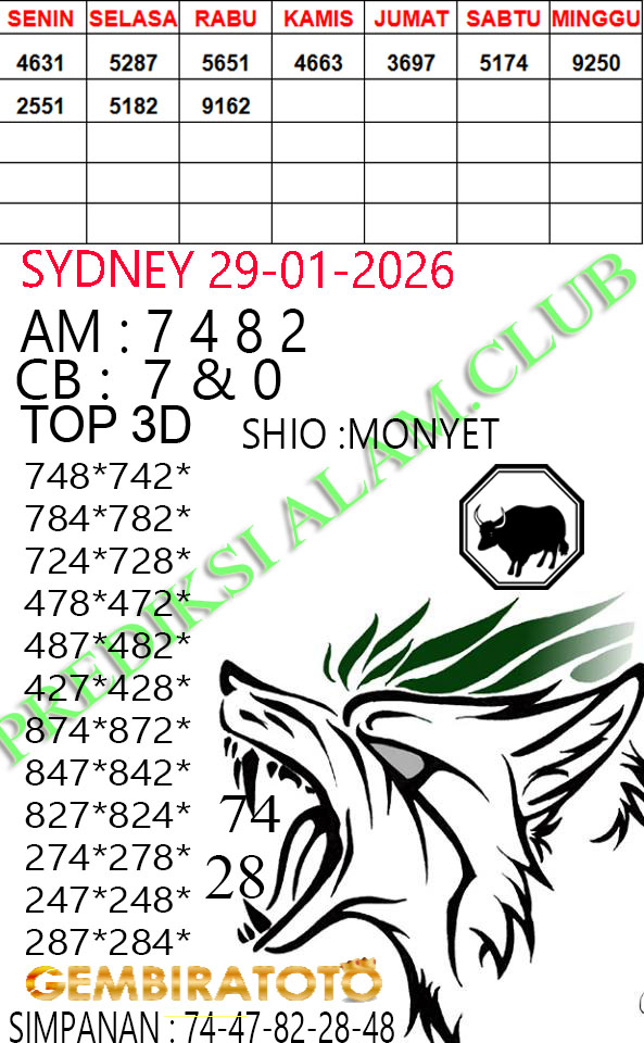 Syair Sydney Lotto Kamis 29 Januari 2026