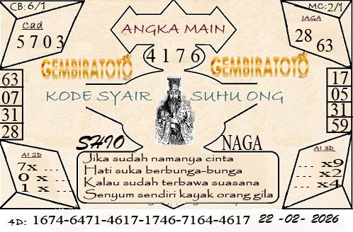 Selamat Datang di SYDNEY Gembiratoto, disini syair paling lengkap dan juga syair yang paling cepat di naikan , dan juga ada prediksi togel yang lain untuk semua pasaran togel tiap hari nya kita upload serta ada paito warna juga, dan semua nya hanya berdasarkan prediksi serta syair tidak ada yang pasti dalam bermain togel semoga angka angka prediksi yang kita keluar kan bisa keluar untuk resultnya Syair.