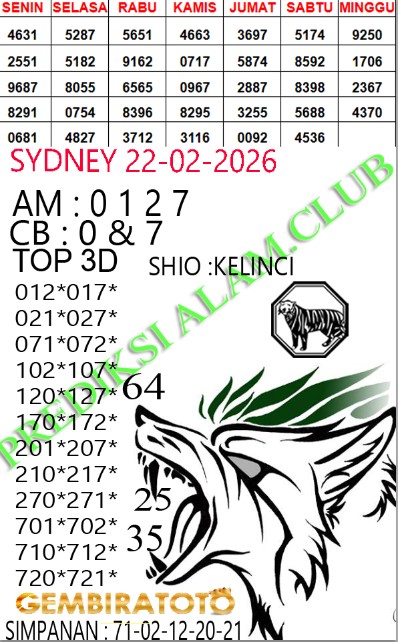 Syair Sydney Lotto Minggu 22 Februari 2026