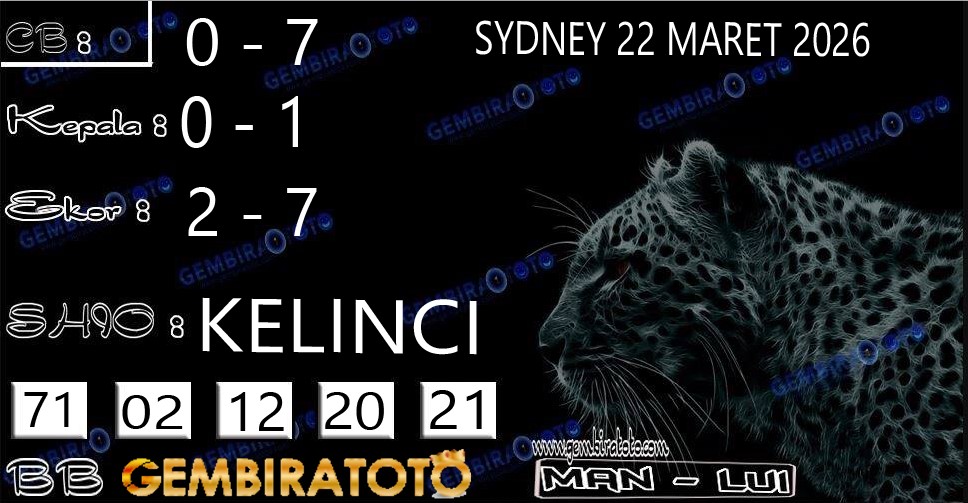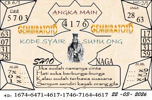 Selamat Datang di SYDNEY Gembiratoto, disini syair paling lengkap dan juga syair yang paling cepat di naikan , dan juga ada prediksi togel yang lain untuk semua pasaran togel tiap hari nya kita upload serta ada paito warna juga, dan semua nya hanya berdasarkan prediksi serta syair tidak ada yang pasti dalam bermain togel semoga angka angka prediksi yang kita keluar kan bisa keluar untuk resultnya Syair.