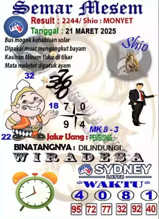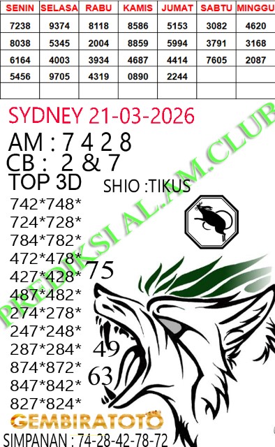 Syair Sydney Lotto Sabtu 21 Maret 2026