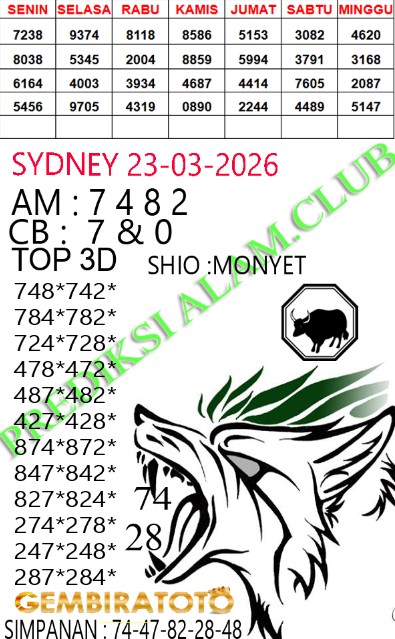 Selamat Datang di SYDNEY Gembiratoto, disini syair paling lengkap dan juga syair yang paling cepat di naikan , dan juga ada prediksi togel yang lain untuk semua pasaran togel tiap hari nya kita upload serta ada paito warna juga, dan semua nya hanya berdasarkan prediksi serta syair tidak ada yang pasti dalam bermain togel semoga angka angka prediksi yang kita keluar kan bisa keluar untuk resultnya Syair.