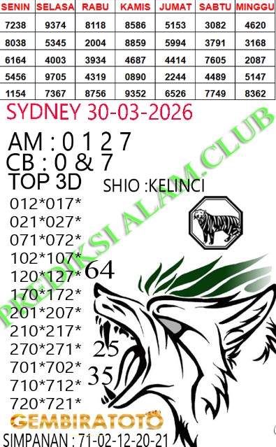 Syair Sydney Lotto Senin 30 Maret 2026