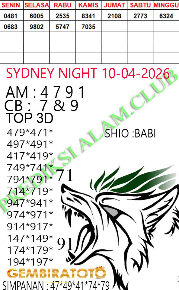 Syair SydneyNight Jumat 10 April 2026