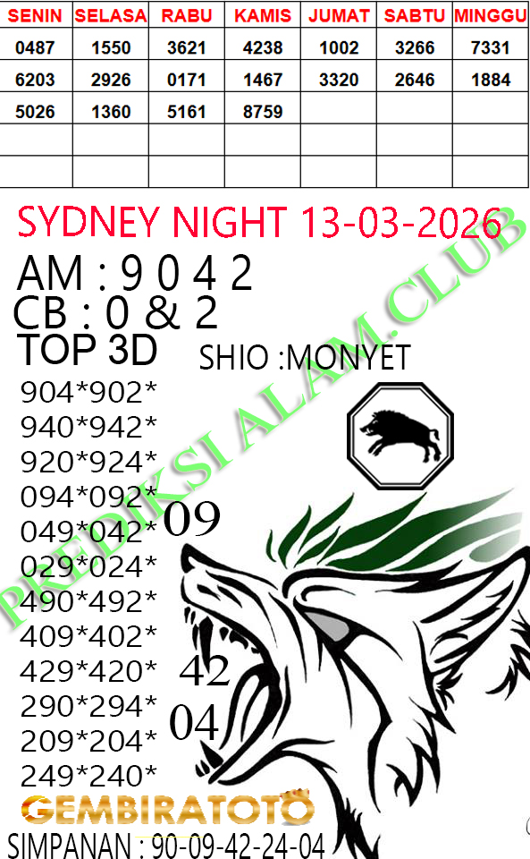 Syair SydneyNight Jumat 13 Maret 2026