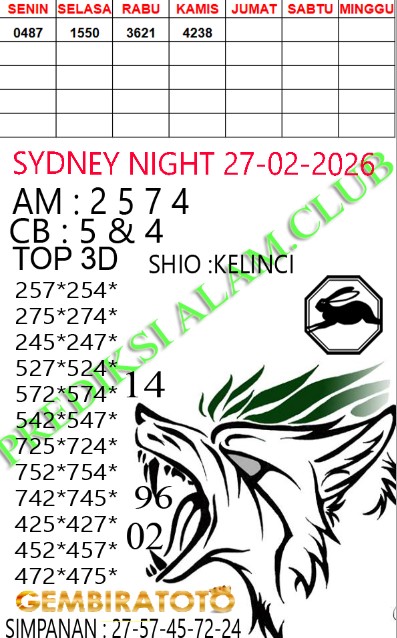 Selamat Datang di SYDNEYNIGHT Gembiratoto , disini syair paling lengkap dan juga syair yang paling cepat di naikan , dan juga ada prediksi togel yang lain untuk semua pasaran togel tiap hari nya kita upload serta ada paito warna juga, dan semua nya hanya berdasarkan prediksi serta syair tidak ada yang pasti dalam bermain togel semoga angka angka prediksi yang kita keluar kan bisa keluar untuk resultnya Syair.
