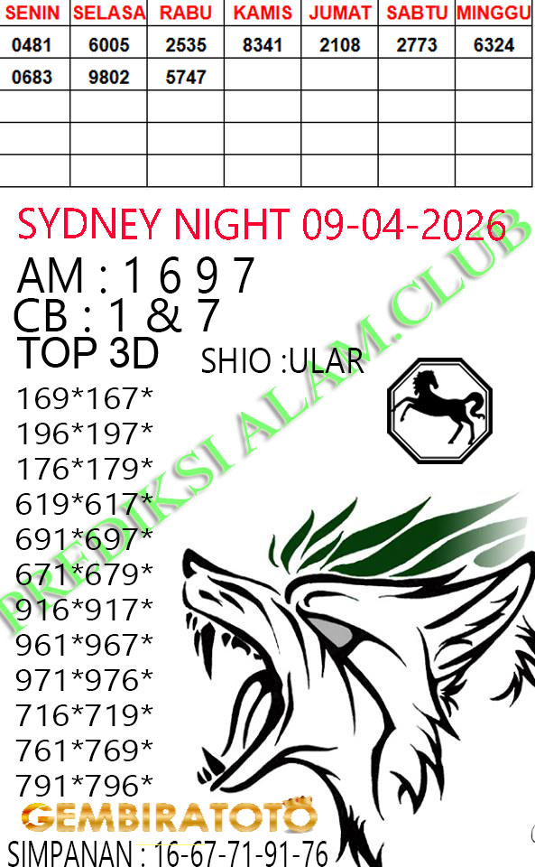 Syair SydneyNight Kamis 09 April 2026
