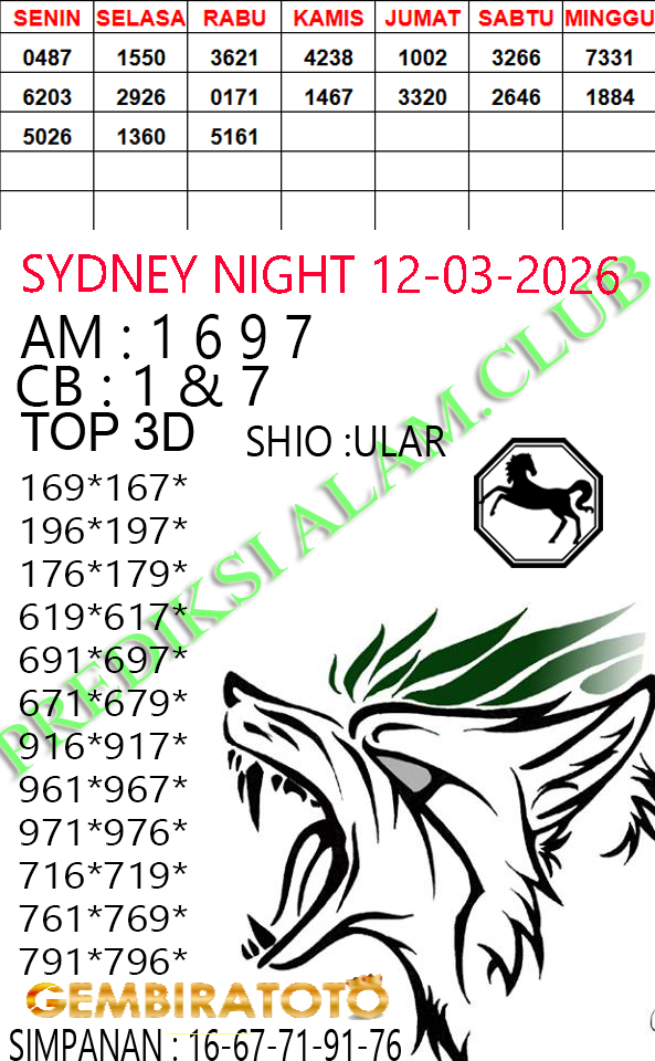 Syair SydneyNight Kamis 12 Maret 2026