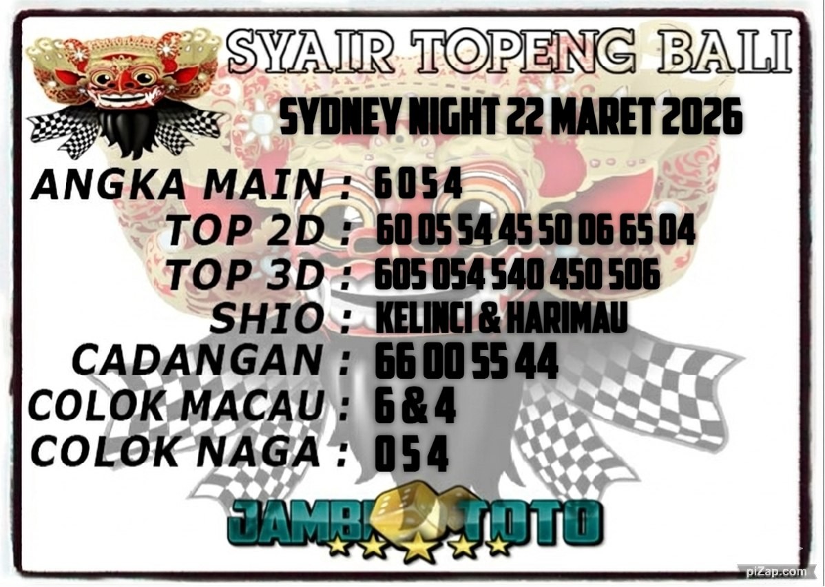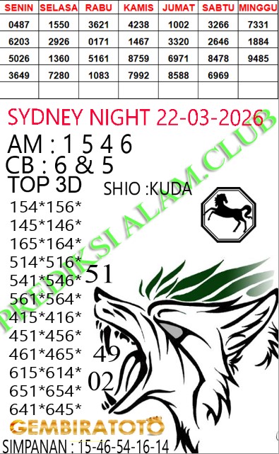 Syair SydneyNight Minggu 22 Maret 2026