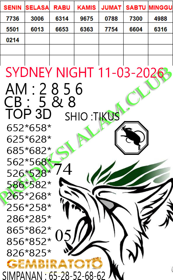 Syair SydneyNight Rabu 11 Maret 2026