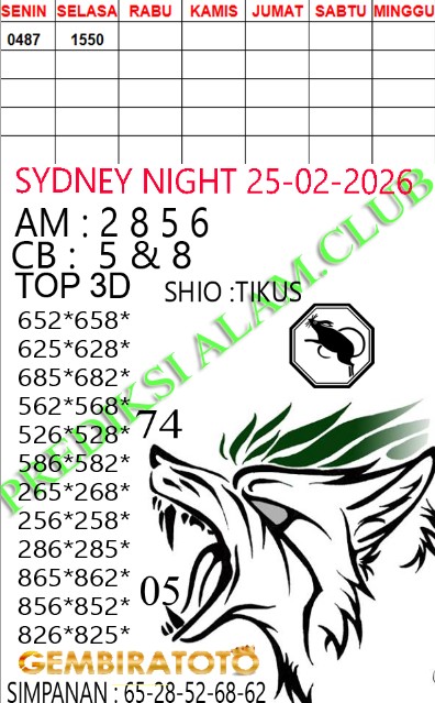 Syair SydneyNight Rabu 25 Februari 2026