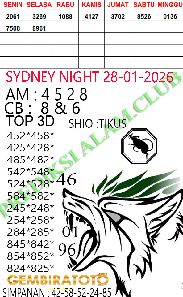 Syair SydneyNight Rabu 28 Januari 2026