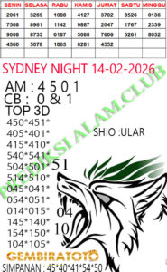 Syair SydneyNight Sabtu 14 Februari 2026