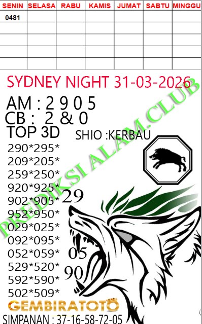 Selamat Datang di SYDNEYNIGHT Gembiratoto , disini syair paling lengkap dan juga syair yang paling cepat di naikan , dan juga ada prediksi togel yang lain untuk semua pasaran togel tiap hari nya kita upload serta ada paito warna juga, dan semua nya hanya berdasarkan prediksi serta syair tidak ada yang pasti dalam bermain togel semoga angka angka prediksi yang kita keluar kan bisa keluar untuk resultnya Syair.