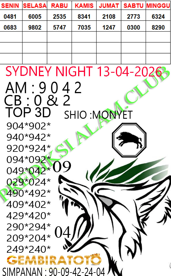 Syair SydneyNight Senin 13 April 2026
