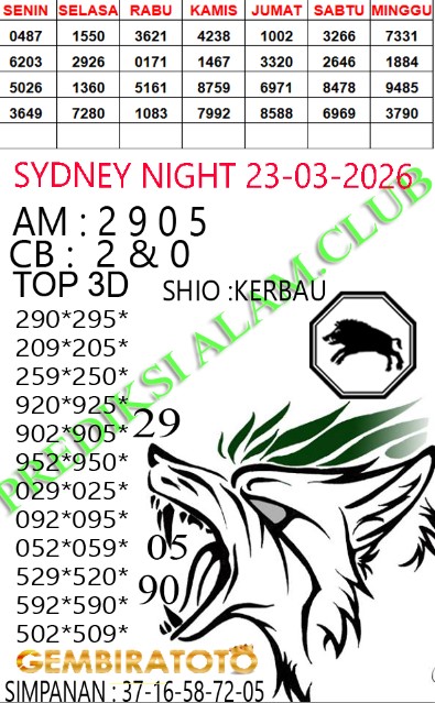 Syair SydneyNight Senin 23 Maret 2026